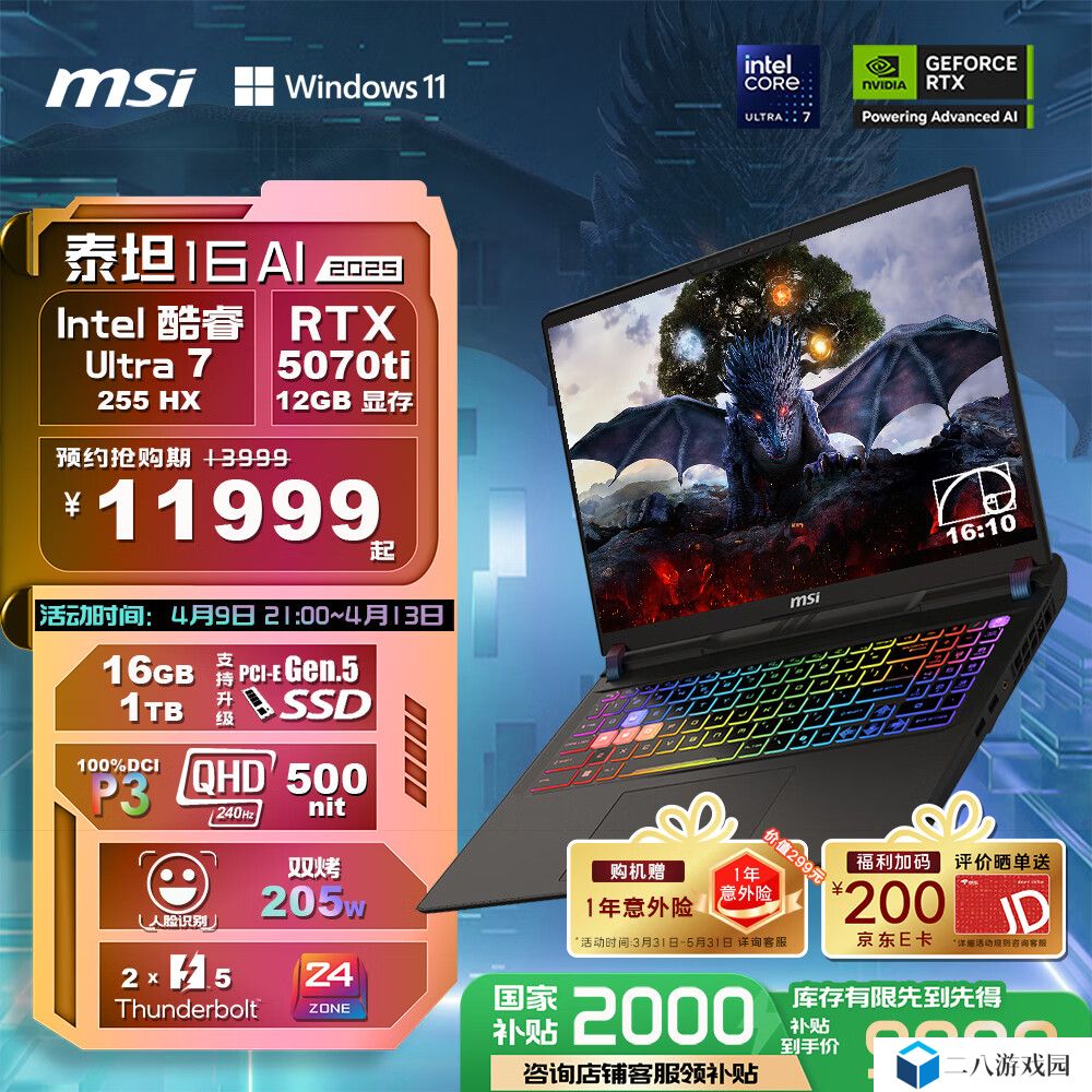 微星推出 RTX 5070 Ti 版泰坦 16 AI 2025 游戏本:国补价 9999 元