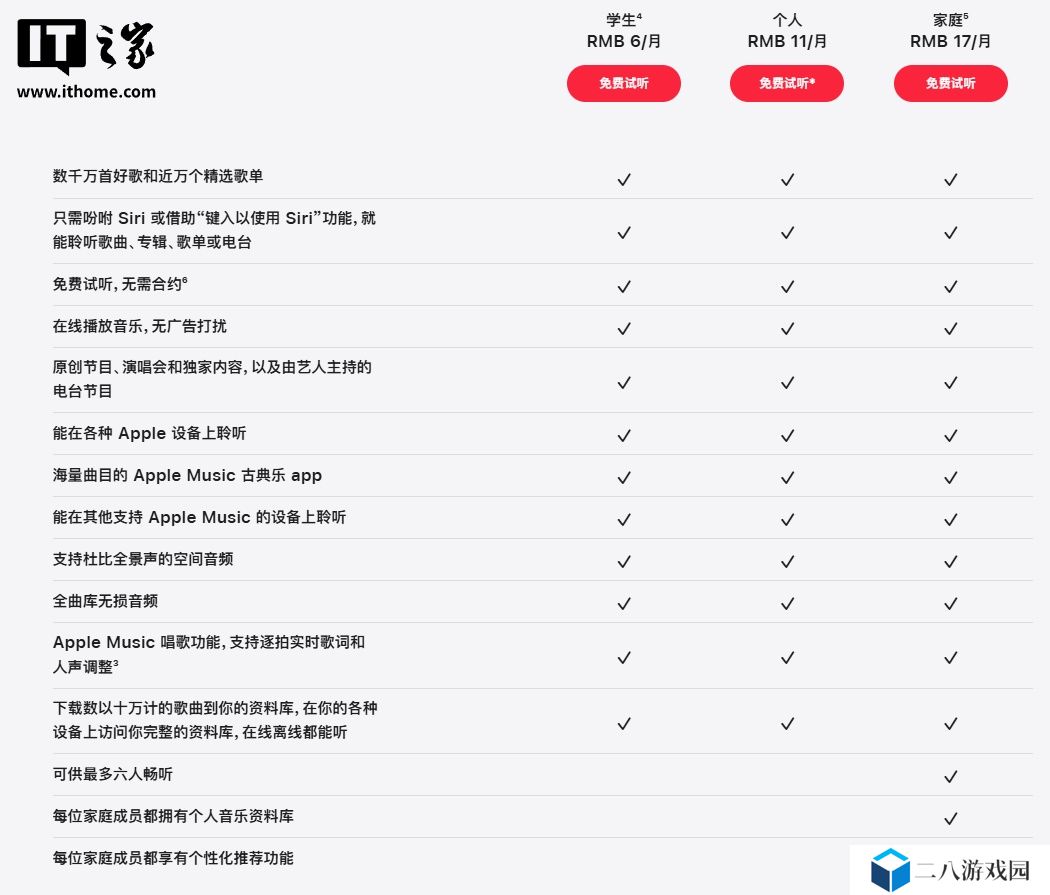 新订阅 Apple Music 的用户可享受一个月免费试听(本站提醒:购买符合条件的设备可免费试听三个月),试听到期后每月收费 11 元,学生和家庭订阅还有更高优惠可享。
