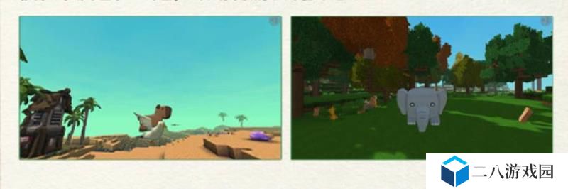 新增【卡皮巴拉和朋友们】动物模组,可在目险生存中体验6 种可驯养动物:水豚(卡皮巴拉)、长颈鹿、大象、河马、乌龟、锂鱼,覆盖雨林、沙漠、沼泽等多元地形,还原动物真实生存场景。
