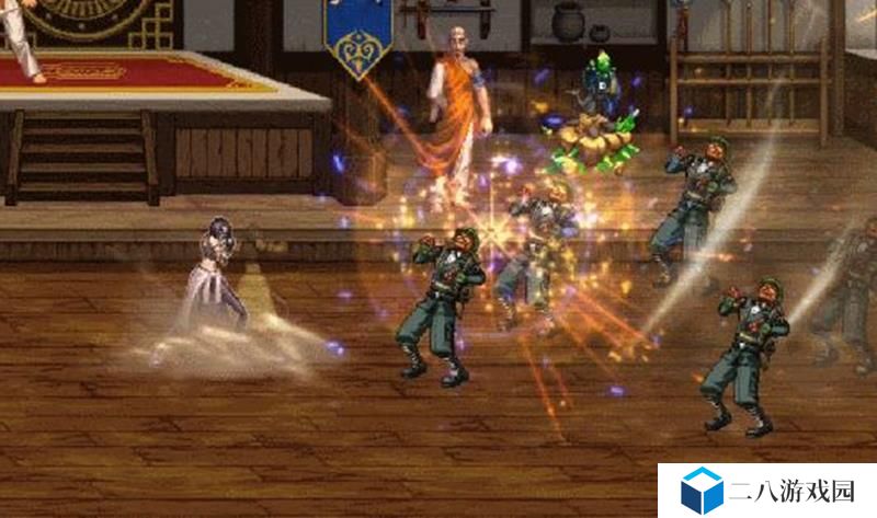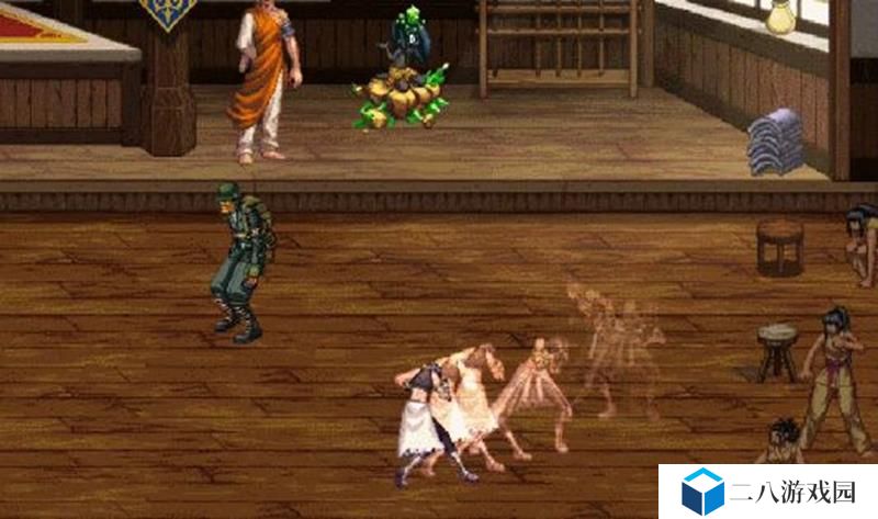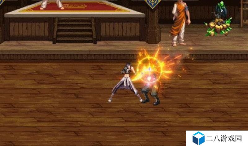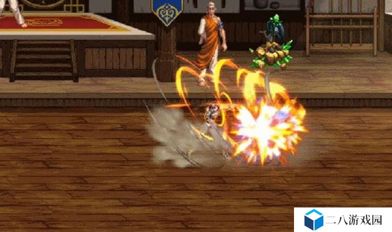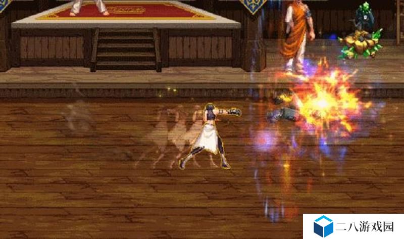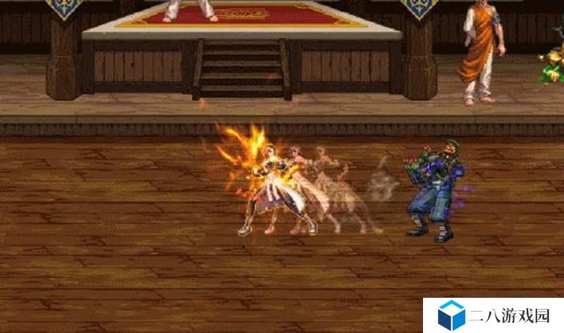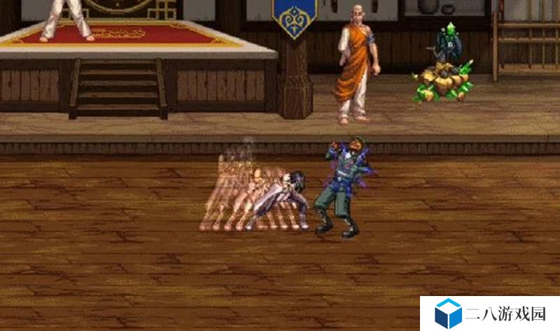 蓝拳使者使用腹拳打击敌人后,马上使用上勾拳击飞敌人。