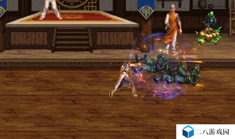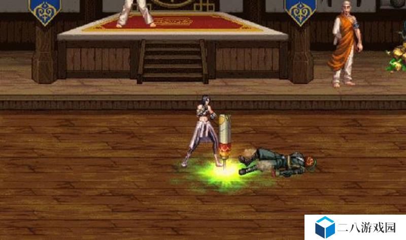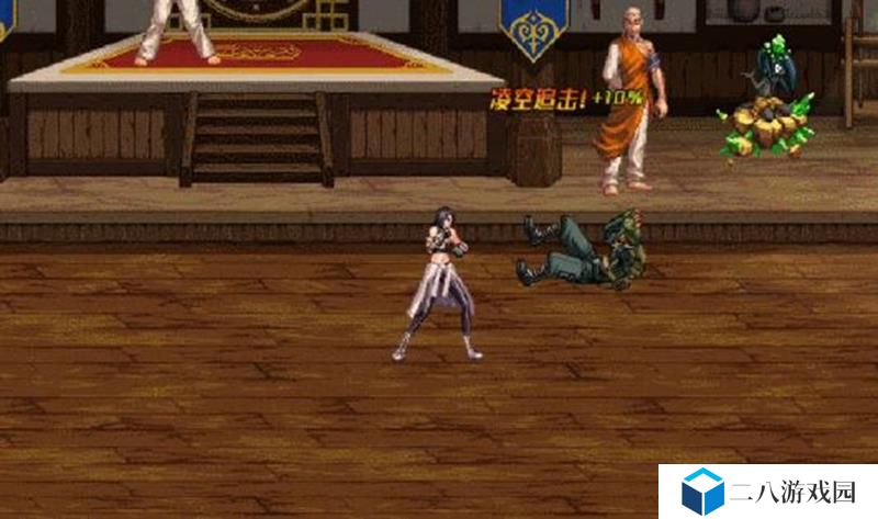 蓝拳使者使用勾拳将敌人打至倒地后反弹,然后用上勾拳将其击飞。