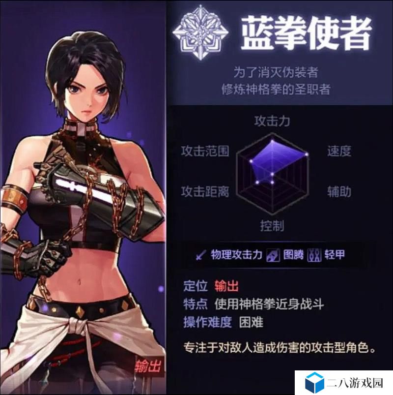 蓝拳使者是为了制裁伪装者,一心修炼“神格拳”的圣职者,内心坚守着锄强扶弱的信念,对于不知悔改的恶人,绝不会心慈手软。与团内的强硬派圣职者(正义审判者、男蓝拳使者)一样属于守序型,但她的态度相对较开放。不过,一旦涉及极端情况,她会做出与其他圣职者不同的选择——“我的铁拳只对准恶徒!”