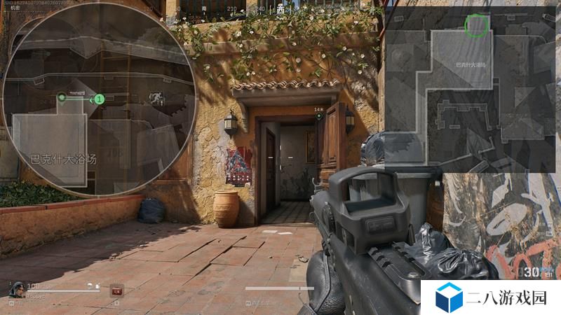 巴克什地图的密码彩蛋门位置在巴克什大浴场的北侧(后方)。密码为【0924】,具体位置如下图所示。
