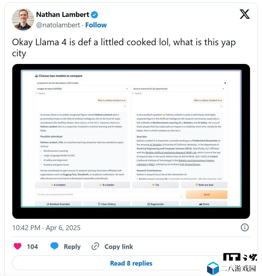 然而,LM Arena 作为一项测试工具,其可靠性本身就存在一定的争议。尽管如此,以往 AI 公司通常不会对模型进行专门的定制或微调,以在 LM Arena 上获得更高的分数,至少没有公开承认过这种做法。