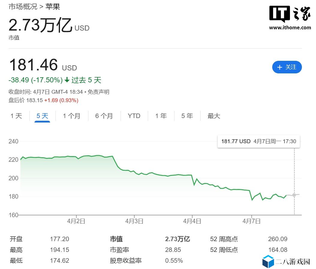 本站 4 月 8 日消息,彭博社昨日(4 月 7 日)发布博文,报道称受关税影响,苹果公司一方面股价过去 5 天跌幅 17.5%,另一方面旗下的 iPhone 出现了抢购潮。全美多家苹果零售店员工表示,由于顾客担忧 iPhone 涨价,部分门店销量超往年同期。