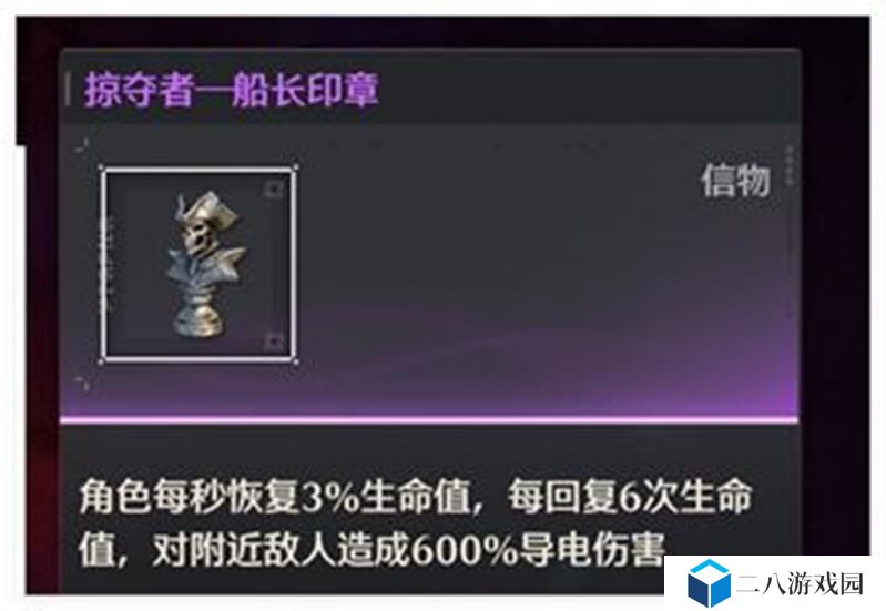 增加共鸣能量,且暗抗,火抗,光抗较多,最佳选择是相里要+吟霖+奶妈队伍,但是需要注意的是,相吟队伍的话需要较高的练度,同时注意怪物“浮灵偶”的抓取技能,一旦被抓取,将会耗费大量时间。在信物上,强烈推荐使用信物“掠夺者——船长印章” ,效果如下: